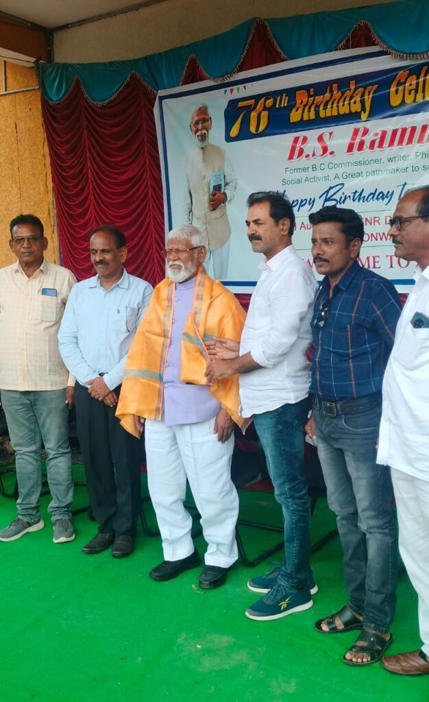 రణం :న్యూస్ జగిత్యాల: ఆగస్ట్ 23,తెలంగాణ రాష్ట్రంలో బడుగు బలహీన వర్గాల అభ్యున్నతి కి నిరంతరం కృషి చేసిన మహనీయులు బి ఎస్ రాములు అని బి సి యువజన సంఘం తెలంగాణ రాష్ట్ర కార్యదర్శి శికారి గోపికృష్ణ పాత్రికేయులతో మాట్లాడుతూ అన్నారు. నేడు శనివారం రోజున జగిత్యాల పట్టణము లోని ఎస్ కే ఎన్ ఆర్ ప్రభుత్వ డిగ్రీ పి జీ కళాశాలలో ఏర్పాటు చేసిన కార్యక్రమంలో భాగంగా ముఖ్య అతిథిగా విచ్చేసిన తెలంగాణ రాష్ట్ర బి సి కమిషన్ మొట్ట మొదటి చైర్మన్ బి ఎస్ రాములు జన్మదినం పురస్కరించుకొని బి సి యువజన సంఘం ఆధ్వర్యంలో ఘనంగా సన్మానించడం జరిగింది. అనంతరం గోపికృష్ణ మాట్లాడుతూ రాములు సర్ జన్మదినం లో మేము పాల్గొనడం మా అదృష్టంగా భావిస్తూ రాములు నిండు నూరేళ్ళు ఆయురారోగ్యాలతో ఉండాలని, బి సి ల స్థానిక సంస్థల ఎన్నికల్లో 42 శాతం రిజర్వేషన్ ల సాధనకై తమ వంతుగా కృషి చేయాలని వారిని ఈ సందర్భంగా కోరారు .ఇట్టి జన్మదిన వేడుకల కార్యక్రమంలో ఎస్ కె ఎన్ ఆర్ డిగ్రీ , పి జీ కళాశాలల సంయుక్త ప్రిన్సిపాల్ అశోక్ బి సి యువజన సంఘం తెలంగాణ రాష్ట్ర సంయుక్త కార్యదర్శి తుమ్మనపెల్లి రాజేంద్రప్రసాద్ బి సి యువజన సంఘం నాయకులు తదితరులు పాల్గొన్నారు .