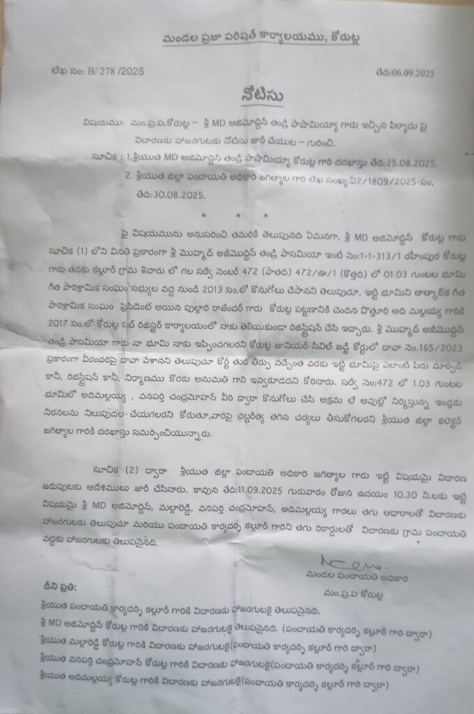 ఈ వెంచర్ పై పలు ఆరోపణలు…నీటి వనరులు కబ్జా చేశారని… లే ఔట్ కు అనుమతులు లేవని… నిబంధనలకు విరుద్ధంగా రిజిస్ట్రేషన్లు చేస్తున్నారని…అధికారులు వీరితో కుమ్మక్కు అయ్యారని కుమ్మక్కు అయ్యారని… తాజాగా అజీమోద్దీన్ అనే వ్యక్తి తను కొనుగోలు చేసిన భూమిని ఇతరులతో సర్వే నెంబర్472 మార్పు చేసి కొత్తగా472/ఊ/1 సర్వే నెంబర్ సృష్టించి అమ్మకాలు చేస్తున్నారని, కోర్టులో కేసు ఉండగా అక్రమ లే ఔట్ లో వేసి అమ్మకాలు చేస్తున్నారని, కలెక్టర్ పిర్యాదు చేశాడు బాధితుడు.జిల్లా పాలలనాధికారి వెంటనే ఈ విచారణకు ఆదేశించారు… నేడు మండలాదాకారి ఆధ్వర్యంలో బాధితులను, ప్రతివాదులను గ్రామ అధికారిని ఈ విచారణకు జిల్లా పంచాయతీ రాజ్ అధికారి సమక్షంలో విచారణ జరగనుంది.
